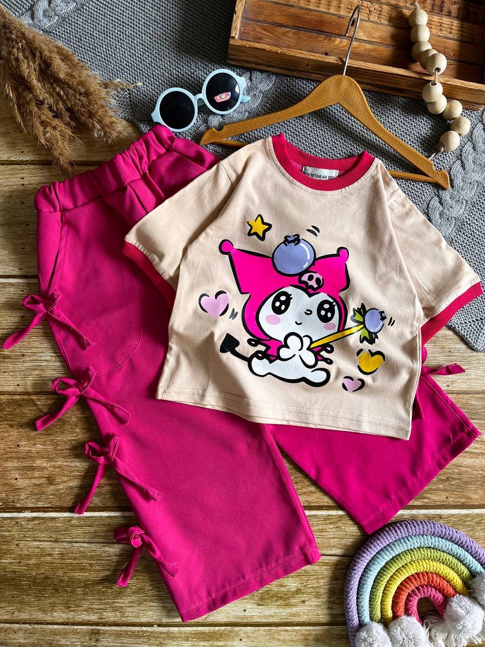 جنس این ست تیشرتش پنبه و شلوار رنگ سبز نخ کتان تابستونی و سرخابی کرپ مازراتی می باشد