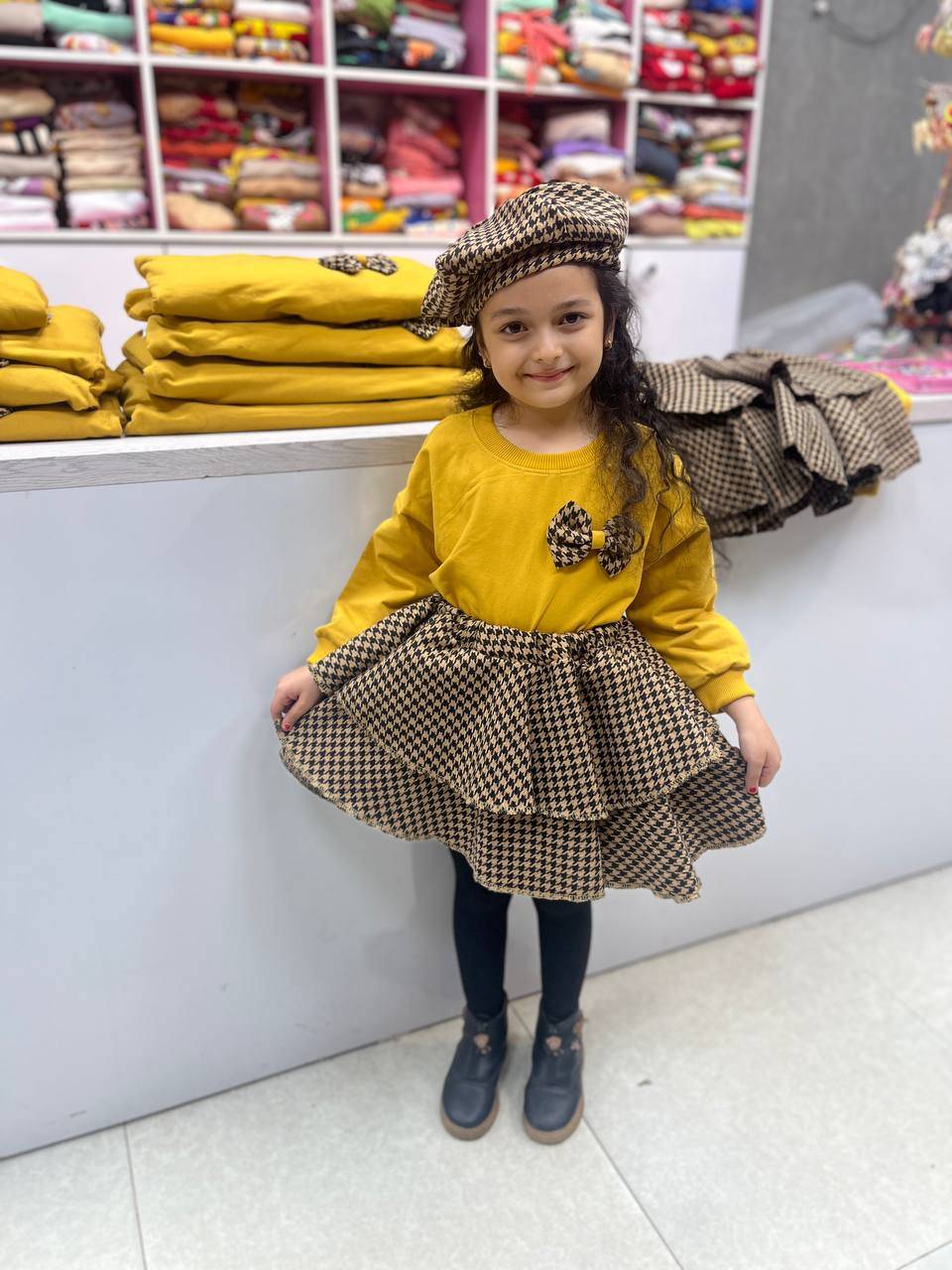 جنس ست سه تیکه آنیسا بلوزش دورس و دامن و کلاهش پیردوپل می باشد