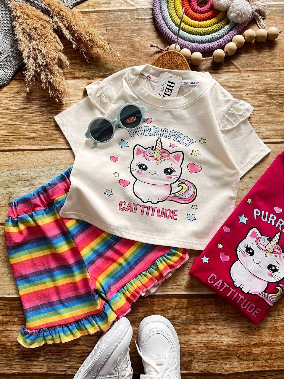 قیمت این ست کراپ شورتک پیشی رنگین کمونی در دنیای صورتی305/000 تومان می باشد